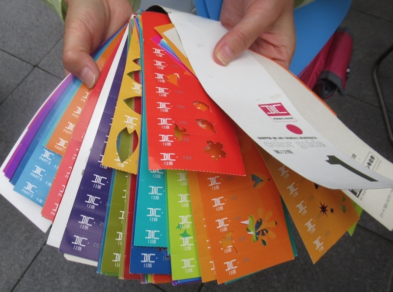 不要となった色見本帳「カラーガイド」を再利用したポストカード作りに、素材を提供します!