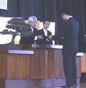 前列 中尾会長,?,竹内 小西 杵築 諏訪 高倉各先生, 前列 前(マエ)校長,秋山教務主事,中村学生主事, 田川元校長 後列 後援会長 遠藤寮務主事,片山専攻科長,後列に担任 ![]() ![]() 前(マエ)校長告辞 中尾会長祝辞 ![]() ![]() ![]() 答辞