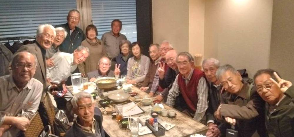当日、どなたの欠席もなく、先に逝ってしまった同期を偲んで 服部トーチャンの献杯の発声、続いて再会を祝してミョウタンの 乾杯の音頭で前夜祭をスタートしました。 18名の多数ゆえ、男性30秒、女性1分の持ち時間で自己紹介の中 寄る年波からか各自の病歴が多く語られておりました。 卒業以来初めて会うメンバー同士もおりましたが、卒寿を迎えた 現在でも即、昔の感覚に戻れる事は不思議なものです。 2時間語りあった後、最後は大島の再会を期しての乾杯で締めました。 特に請川、笠井両夫人は何かと多忙の中の参加ありがとうございました。 小坂