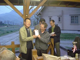 2期関原氏より九州キュウシュウ高級コウキュウ焼酎ショウチュウ、5北川氏キタガワシより高級コウキュウ日本酒ニホンシュれと、