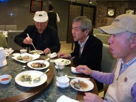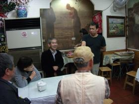 なじみの中華料理のほか、台湾でしか食べられない珍味「しじみの醤油付け」をみんなで賞味。酒によく合う味で、紹興酒も3本ほどあける。