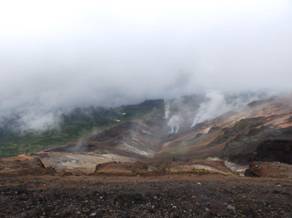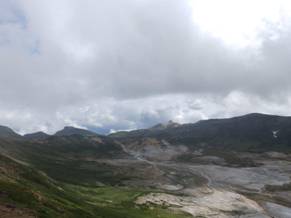 旭岳山頂より姿見の池・地獄谷 旭岳山頂にて