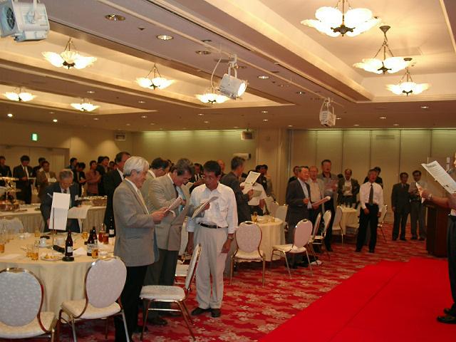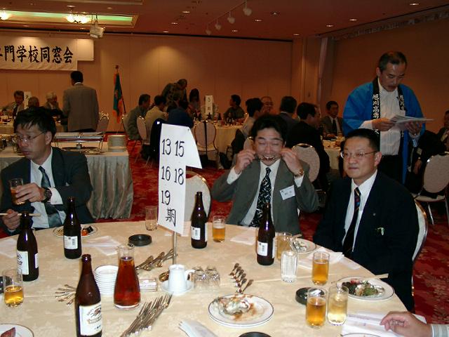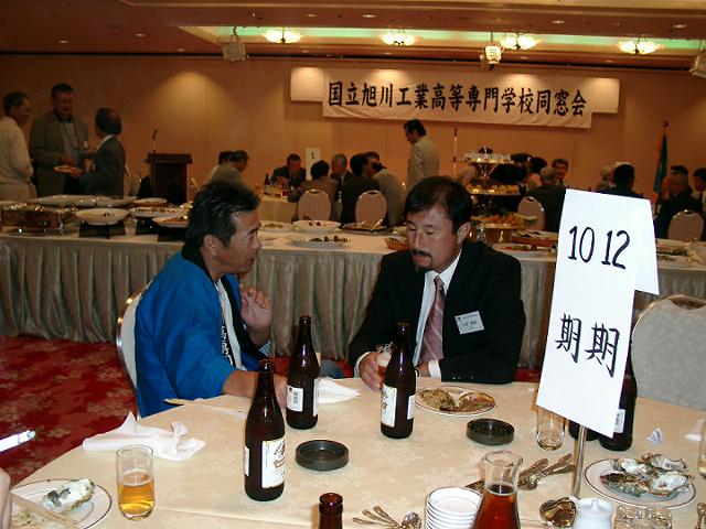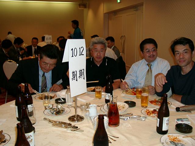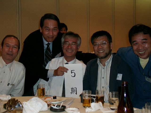 <総会・懇親会>会場で参加費を支払い、名札をつけて会場入り。我々5期だけで1テーブルを構成することは初めてでした。見ると卒業以来初めての顔もあり、あっという間に昔にタイムスリップしてしまいます。