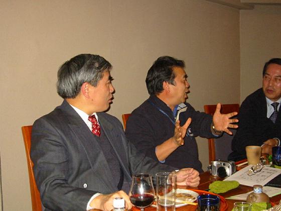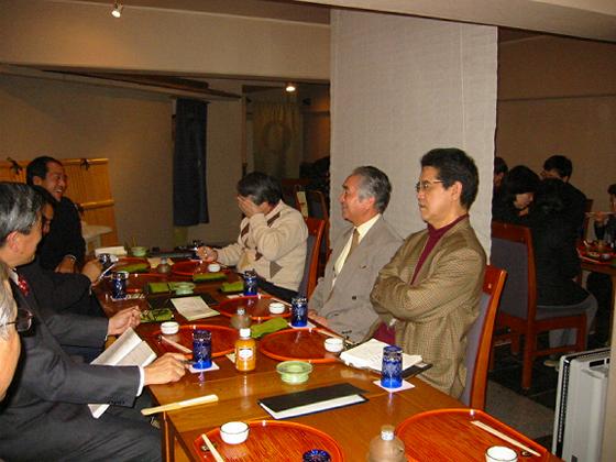 久々カムバックの大森さんも4月に退職され、東京で新たな職場でご活躍されるとの事。源津さんは、更に新たな道に進まれるご予定とかで、いよいよ血気盛ん(?)。 山口さんは、昨年来、熟年離婚されないようにとのお話をされますが、相変わらずのリトルリーグ監督で元気いっぱい。松元さんも、企業のリーダーとして、元気な関西企業を経営されています。辻田さんは、相変わらず、景気動向に敏感な生活をされ、いつも関心させられます。それにつけても、昨年の近江八幡での将棋の話題になると、西原支部長と盤面外でも熱い戦いが繰り広げられ、我々外野は丁丁発止の将棋論戦に油を注いで話を盛り上げ・・・・。 遠路参加の土谷さんは、総会での、東海地区の参加率の悪さをいつも嘆いていますが、決して彼のせいではありません。福井?親会社が鋼製橋梁談合事件で、事業が厳しいので、子会社が自立しなければと、B-787関連の仕事で、ほとんど休みなしの状態。