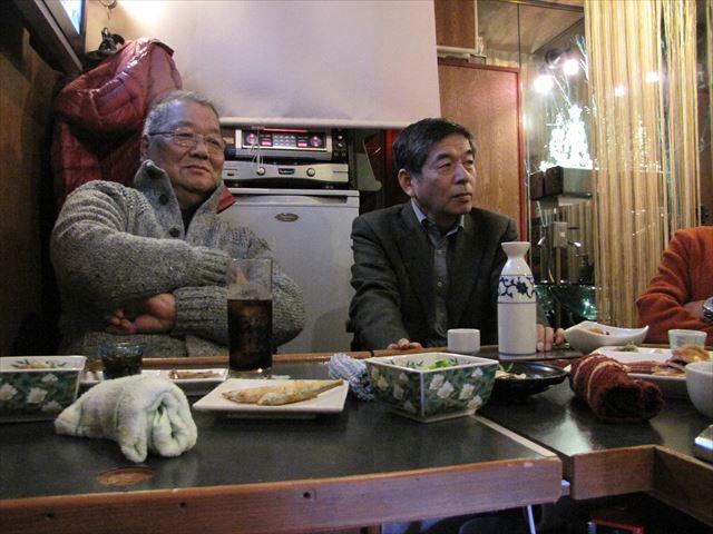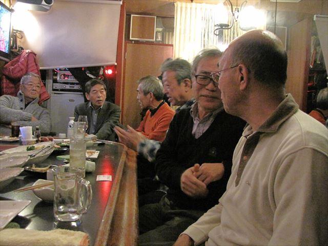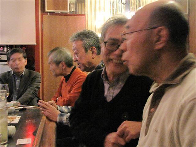 昨夕、表記同窓会新年会を挙行しました。 前日に須原さんから参加申し込みがあって8名の会になりました。 浜田・男沢・須原・明円・相場・新田・牧・高梨です。 8席のカウンターだけのお店なので、過不足なく席が埋まりました。 私としてはもう一人多くて、誰かが吊手(ないけど)を持つとか床にじかに座るとかいう 事態を密かに期待していたのですが、残念ながらそうはなりませんでした。 席上、「古希の旅行」の宣伝をしました ・川村さんが並々ならぬ入れ込みようで企画していること ・古希とはいっても数え年の70歳ではなく満70歳の来年にやること ・できれば請川・遠藤未亡人や林孝子さんにも声を掛けたいこと などが主な内容です。川村さんに対するプレッシャーも多少はありますけど また、北海道方言の話になったとき、つぎの話をしたNHKアナウンサーの名前が出て こなかったんだけど、さきほど思い出しました。「国井雅比古」でした。 その話というのは、NHKの番組で方言が取り上げられたことがありました。 日本各地を転勤するNHKアナウンサーの国井さんは旭川放送局に在籍したことがあり、 そこで聞いた「ナーンもさ、ナンモ、ナンモ」という言葉が胸に沁みたそうです。 感謝の言葉に対して「気にしないでください」という返答を素朴に優しく返されて、 それが強く心に残っているというものでした。 新田さんが撮ってくれた写真は全部で18枚あります。 飛んでいる番号の6枚の写真は見られては具合の悪いものです。そんなことナイか! 4時開始はそれなりに評価されましたが、「もっと早く」とか、「週末ではなくウィー クデーに」という意見もいただきました。 私としては「帰りの電車の混み様」を配慮して週末に設定したのですが、ウィークデー でも超早い時間にして退勤時間前に終わらせれば退勤時間は回避できます。 次回の開催にたいしてご希望があればお知らせください。曜日・時間などできれば年に 数回以上の定例の会にしたいと思っています 高梨 ![]() ![]() ![]() ![]() ![]() ![]() |