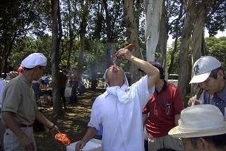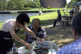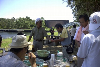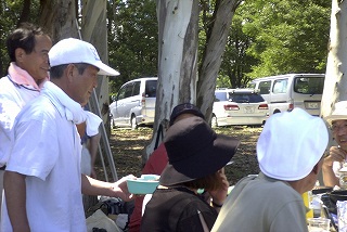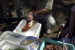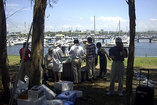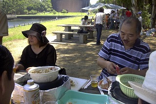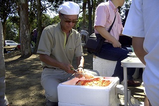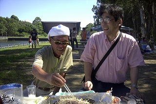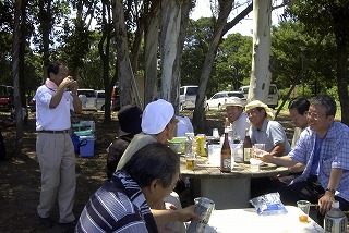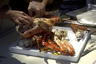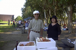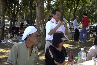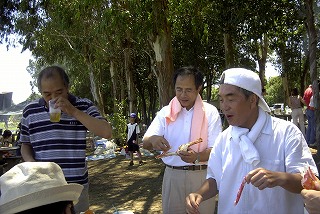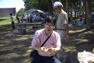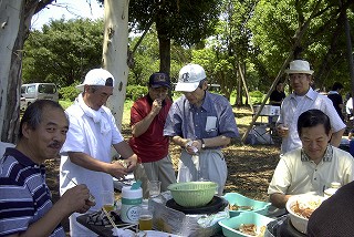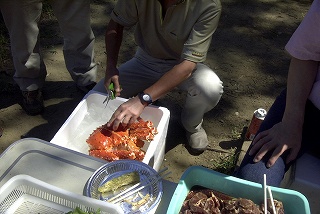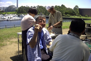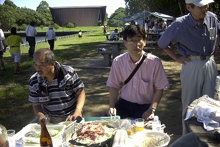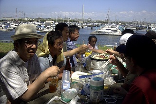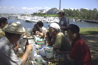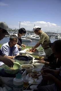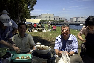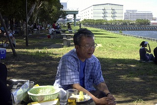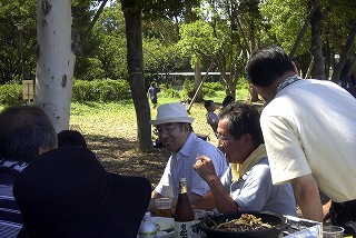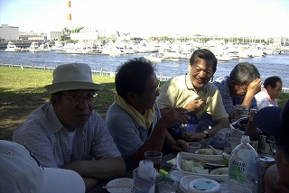 高梨です [ジンギスカン大会 in 夢の島 2004 with 中村正人] のレポートをする予定でしたが、会の実質が「ジンギスカン大会」から「カニ大会」に変ったために、「カニ大会」として報告します。 爆暑の東京にしては比較的涼しく、海風も感じられる夢の島に集った参加者はつぎの12名でした。 1期生:中村正人夫妻・伊藤喜代志・服部剛・佐々木芳美・山田正弘・高梨 2期生:大森正春・本郷進・村中弘美 3期生:松田重雄・立石律子 11期生:森下修 会は、冒頭に述べたとおり「カニ大会」1色になりました。何しろ、タラバガニ1杯でも十分だと思っていたところに、ナント6杯、それに加えるに毛ガニ15・6杯と、殆どロシアの密輸業者の宴会状態。らむ亭のジンギスカンが僻んで霞んでしまいました。 第1部で、ひたすらカニを食べ、2時頃からの第2部でジンギスカンを申し訳程度に食べ、死ぬほどコレステロールを摂取した1日でした。 この日参加できなかった人は大いに悔やみ、今後は悔い改める事をお勧めします。 今回の上京に味を占めた中村さんは、シッカリと次回の検診を(じょうの会のある)1月末に設定されてそうです。 私は彼の回復を願うものですが、許されるならば、年に数度の上京しての検診が必要な程度まで回復し、そこで留まっていてもらいたい気もしていますよ。