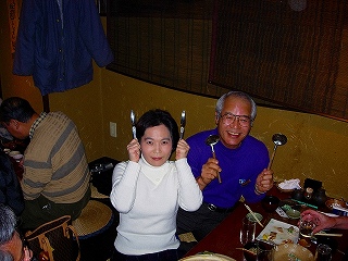 白いセーターの素敵な女性は、星野正樹(6E)さんの奥様です。 常連の立石さんに加えて、会を盛り上げて下さいました。