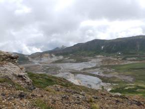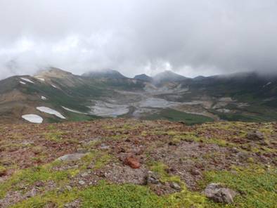旭岳山頂より姿見の池・地獄谷 旭岳山頂にて