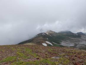 2013年8月22日 大雪山 2013年 大雪山登山の報告 ―日光白根山、立山連峰に続いて― 2013年8月25日 3E 梅内功 先日の立山に続いて大雪山を登ってきました。 今回は曇りでしたが、山の縦走では雲の切れ間もある明るい曇りでしたので、楽しく快適な山で した。旭岳温泉からロープウエーで姿見の池下車。7:00出発 旭岳、間宮岳、北鎮岳、桂月岳、 黒岳を縦走してロープウエーで層雲峡へ15:30下山。8時間半の山歩きでした。 8月22日(木) 旭岳(2290m)をスタートに間宮岳(2185m)、中岳(2113m)、北鎮岳(2244m)、 黒岳(1984m)の縦走です。 7時00分 ロープウエーで姿見の池駅到着。 山を見ると少しガスがかかっているが明るい。山頂での快晴を期待して登山開始。 8時35分 旭岳山頂着。 曇りの状況は変わらず。時々雲の切れ間があり山並みが一瞬に見える。 山頂より姿見の池、地獄谷が見えた。証拠写真を撮って休憩。 8時50分 間宮岳に向かって出発。火山灰の急斜面を下って、間宮岳への尾根歩きに入る。 振り返っても旭岳山頂は雲に隠れて見えない。 9時40分 間宮岳到着。ここからお鉢平がきれいに見える。 雲が切れていて北海岳方面の山並みも見えて感動。 たくさんの写真を撮りながら、中岳分岐点、北鎮岳へ向かう。 11時05分 北鎮岳山頂着。 曇りで廻りの見晴らしは悪く、少し待ったが期待ができそうもなく、下山して黒岳へ 向かう。途中雪渓があり、注意を払いながらの下り。 12時35分 黒岳石室着。 ここで昼食をとる。そして石室目の前の桂月岳(1938m)を散歩がてら往復。 途中高山植物の味覚クロマメを賞味して戻り、13:25石室を出発。 13時45分 黒岳山頂着。 曇りは晴れず下界は見えないが、高原の山並みはきれいに見える。 北海岳、白雲岳、鳥帽子岳など周りの山並みを撮って14:00下山。 15時30分 層雲峡到着。 黒岳山頂より50分で下山してリフト乗り場駅に到着。 リフト、ロープウエーを乗り継いで層雲峡に到着。 7:00登山開始から合計8時間半の工程でした。選りすぐりの写真を紹介します。