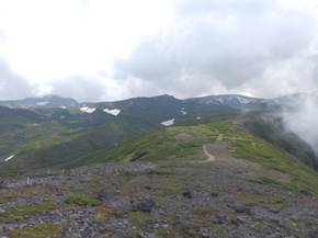 中岳・北鎮岳を望んで お鉢平(間宮岳稜線より)