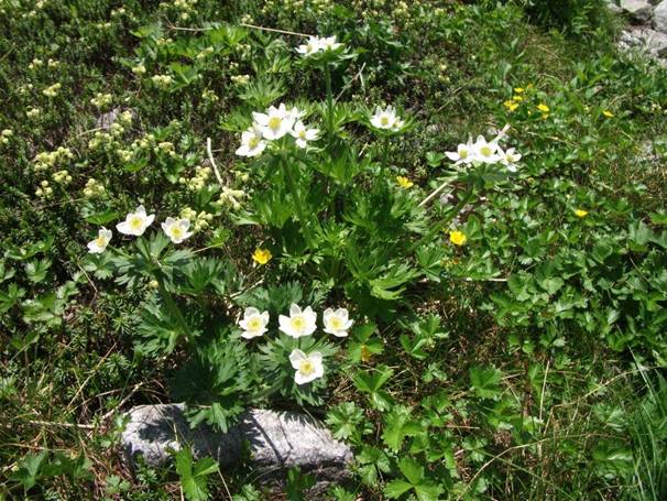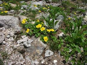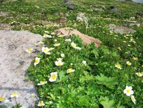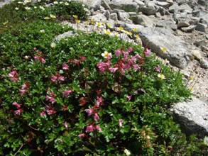 イワキキョウ イワカガミ(ピンク)・チングルマ(白)