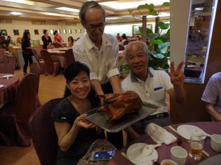 台湾ツアー 2015 2015年 東日本支部有志 台湾ツアー報告 2015年11月24日 3E 梅内功 東日本支部有志での3回目海外ツアー(台湾ツアー、韓国ツアーに続いて)2度目の台湾の 状況報告です。 今回は下記9名の参加者で観光して来ました。 1期 高梨さん(現在旭川へ転居) 2期 浅利さん、 大森さん 3期 立石さん、 梅内、 西日本支部から岡田さん、西田さんの2名 4期 池野さん 準同窓のゲスト 高野まりちゃん 11月10日(火)15時成田を出発。13日(金)に帰国。3泊4日の台湾旅行。 観光巡りは、当然の故宮博物館をはじめ旧所遺跡寺社などの市内観光、千と千尋の舞台の 九?の階段老街、台湾温泉(水着着用混浴温泉でーす)・・・・・。 なんといっても出発前からの話題は料理内容だった。 ペキンダック・・・ふつうは皮部分しか出てこないが、肉はどうしているのだろう、まかない料理 で裏で食べられている?ぜひ皮も肉も全部賞味したい。9人一羽で足りる? それとも二羽?値段は?という興味と不安でレストランへ・・・・・・。 一羽で十分でした。肉部分は普通の鶏肉味で皮部がおいしい。値段は普通。 日本のような特別料理扱いではないということがわかった。 臭豆腐・・・・・・・異様な臭さで有名な豆腐料理。臭いはくさやか?銀杏の生ぎんなんか? 地元では「おいしくて最高の食材」だという。見かけは揚げ出し豆腐、賞味して みれば意外と普通の食材。臭さもなく拍子抜け。 地域の食品メーカによってずいぶん臭い、味が違うらしい。 ふかひれ、ナマコの料理・・・・・・日本で食するよりはおいしく安く食べられることを楽しみにして いたが残念ながら飛び切り高い料理であることが分かった。 もとをただせばいまや両食材ともに日本から輸出されている食材。日本で食 するのが最高との結論。特にナマコは、日本で乾燥されたものを戻して食材 に利用されている。日本の生のナマコ酢が最高。 台湾魅力の味付け麺、小籠包、野菜炒め、八角の味付けゆで卵、大仏頭のような緑の甘い果 物・・・・などなど。特にマンゴウを思う存分食してみたかったが時期を逸してい た。 夜市ののぞき見食べ歩き、夜市屋台の人気おやき、天厨菜館での夕食、鼎泰豊での昼食・・・ 花より団子の食べ歩きで過ごした台湾巡り。 ホテルに戻って全員一部屋に集まり、毎晩12時頃までのノミュニケーションは最高の思い出に なりました。 ![]() ![]() 11月10日出発日の夕方は、ホテル近くの夜市街通りわきの食堂で夕食 店内壁にはミレーの絵が・・(1回目台湾ツアーの時と同じ店でした) ![]() 11月11日市内観光の行天宮にて(参加全員の顔ぶれ) ![]() 11月11日夜の観光 九?老街(千と千尋の舞台) 362段の階段の両側に店がつらなっている (伊香保温泉の階段街似) ![]() 11月12日夕食会場 「天厨菜館」にて このペキンダックを9人で平らげました 肉よりも皮がおいしかった ![]() ![]() 天厨菜館での会食風景 紹興酒、ビールも飲んで一人当たり日本円で2000円ほどでした (ふかひれ、ナマコ料理はなし) ![]() ![]() |