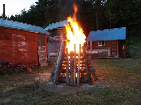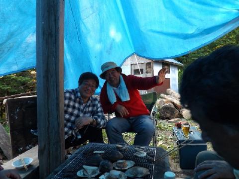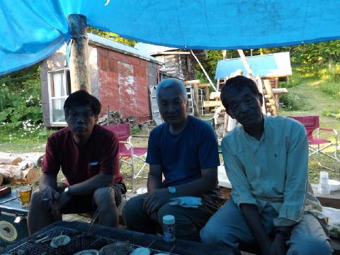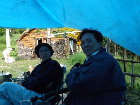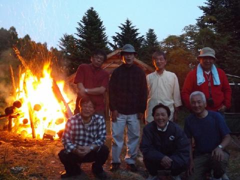 ![]() キャンプファイアー初め そろそろ終了? ![]() 鏡・青井妻 芸下・高橋正・浅井 ![]() 荒木・青井 浅井が修理したログ2F ![]() 翌朝全員集合 |