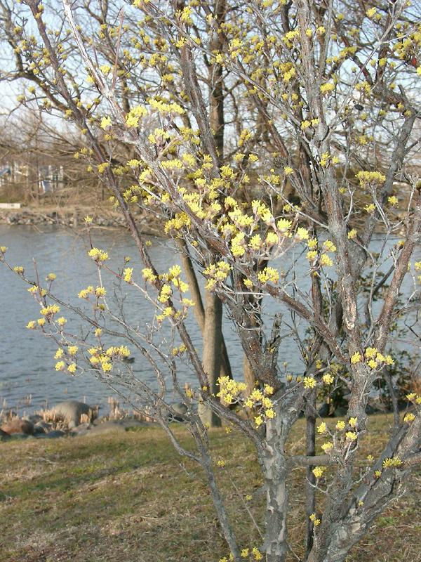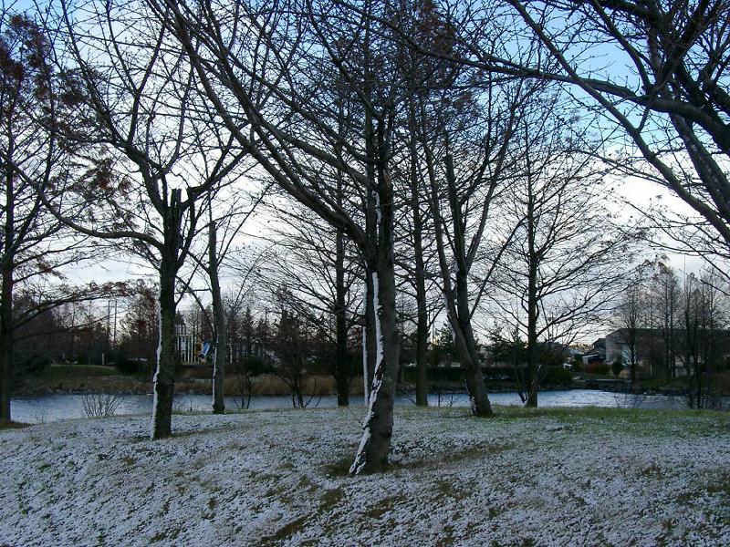 稲美野にはいたる所にかんがい用のため池がある。「天満大池」はそのひとつ公園として整備され、トザミズキ・ユキヤナギの芽が膨らんでいた。「天満大池」の脇には菅原道真を祭神とする「天満神社」があり、秋の祭では 神輿を池に投げ入れ豊作を祝う。