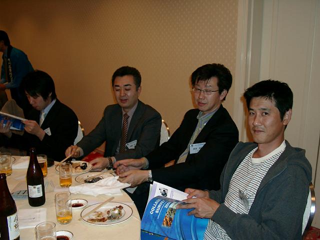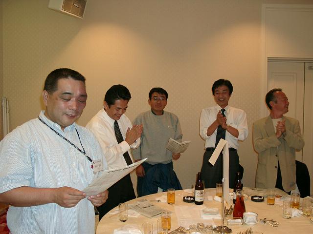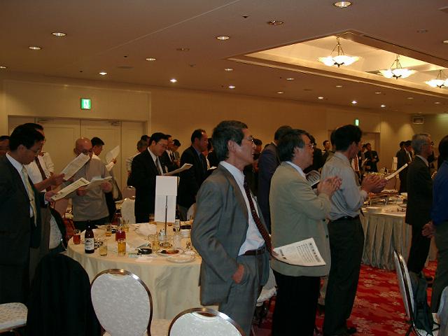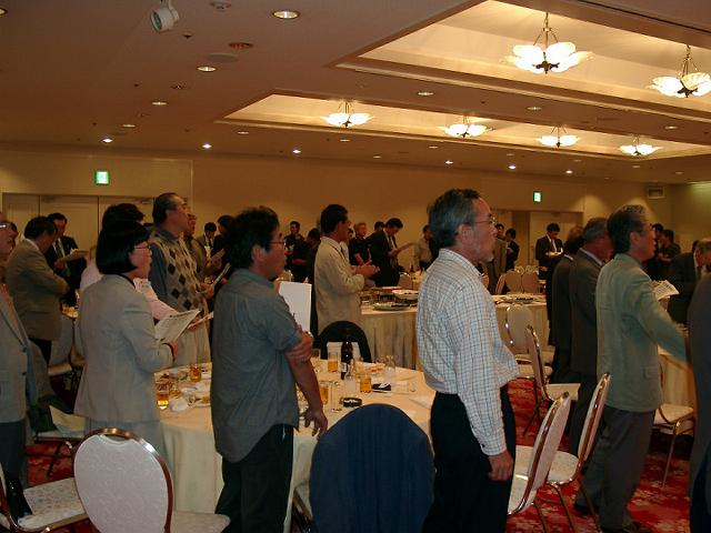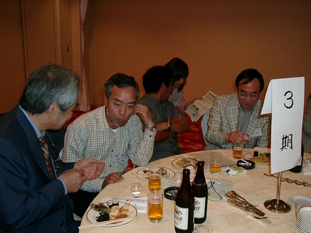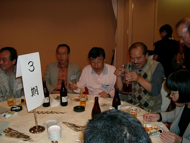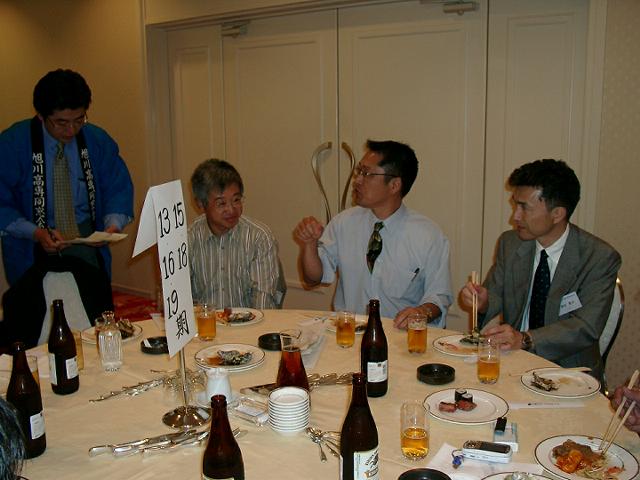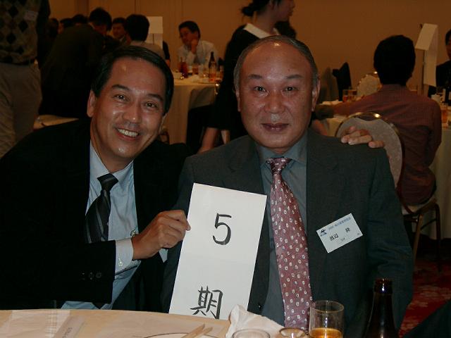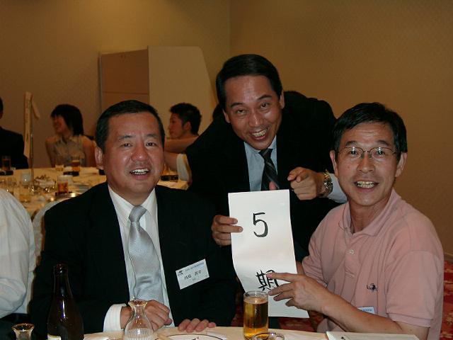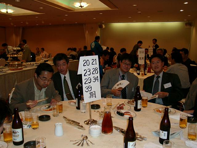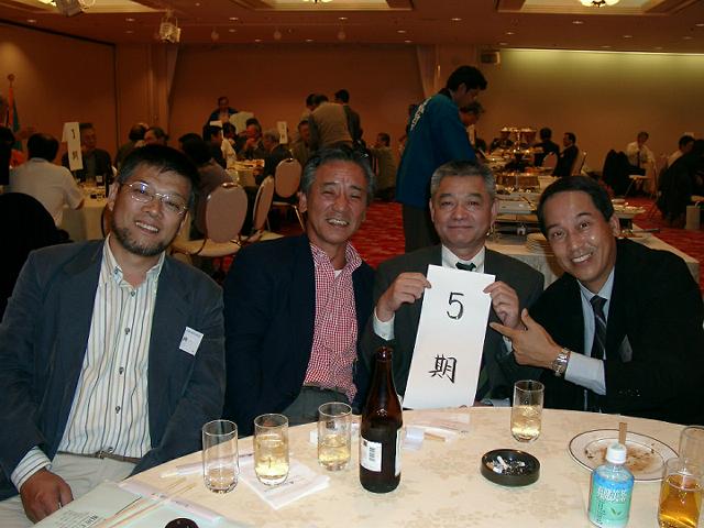 <総会・懇親会>会場で参加費を支払い、名札をつけて会場入り。我々5期だけで1テーブルを構成することは初めてでした。見ると卒業以来初めての顔もあり、あっという間に昔にタイムスリップしてしまいます。