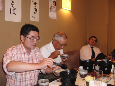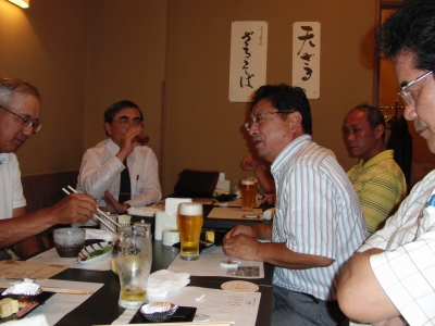 C氏:6年間の米国(シカゴ)生活から帰国。さすがに、英語の発音がネイテブに近いと、一同感心。米国では、取引先の倒産が2件。うち1社はGMだが、ちゃんと支払ってくれたらしい。住んでいたところはシカゴでも非常に治安のいいところで、ドアを開け放っても、泥棒に入られた事もないらしい。(私ら俗人は、シカゴ=ギャングのイメージしかないけどね・・・) ご子息はイリノイ大学に入っていたが、日本の大学で工学を勉強したいと言って帰国。来年の入試目指して頑張っているとか。(他にも一杯 異文化でのエピソードを話していただきましたが、酔いのせいで覚えきれませんでした。)