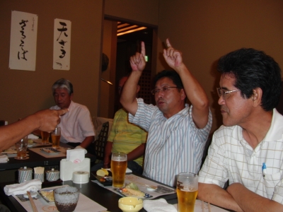 D氏:「辻田新支部長に、問題あり!それは、将棋が弱すぎる。通天閣・坂田三吉の前で精進祈願をしてくるべし!」との叱咤があったが、辻田支部長は「却下!」・・・・。(また楽しいやりとりがたのしめそうです) 当日の飲み放題メニューにに赤ワインが無く、申し訳ありませんでした。