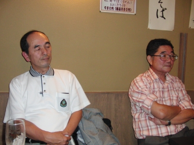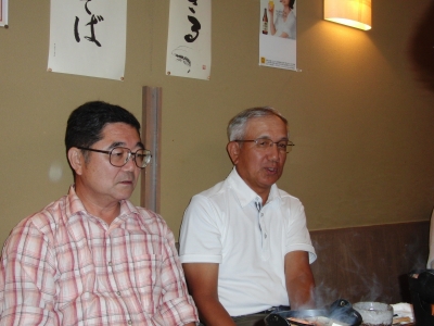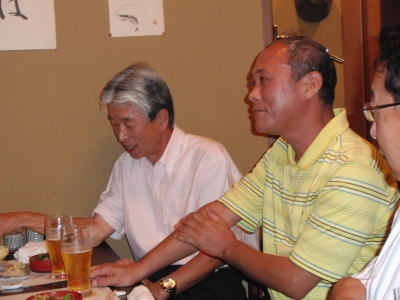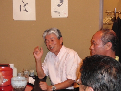E氏:現在、年金生活に突入しているが、(月)・(金)は高齢者大学で地域の歴史を勉強、(土)・(日)はソフトボールコーチ、(水)は奥さんと卓球教室とほとんどヒマなし。ソフトボールでは去年全国大会出場、今年は近畿大会出場・明石市で優勝。 というお話をお聞きした後で、この日の酒に悪酔いし、D氏とともに途中退席。(お大事に)