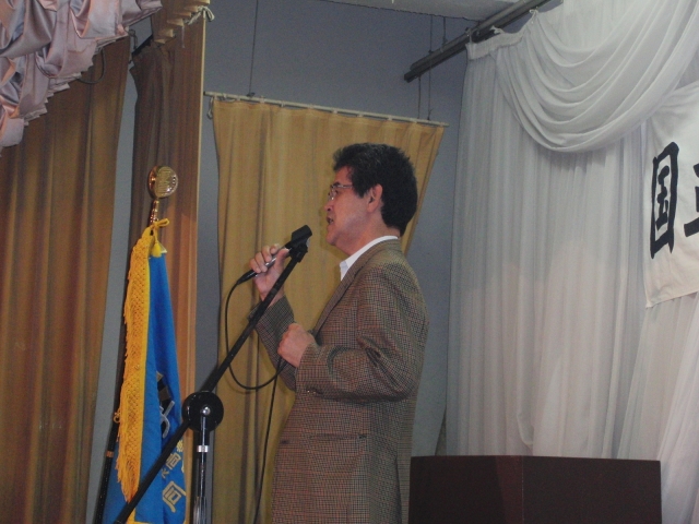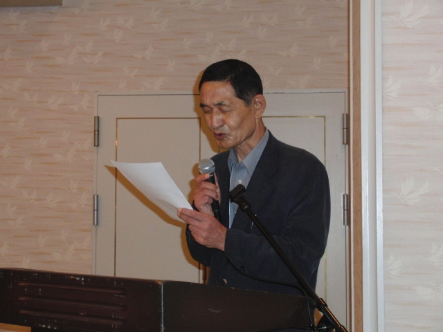 中尾会長、病気療養中のため、松浦副会長がメッセージ代読