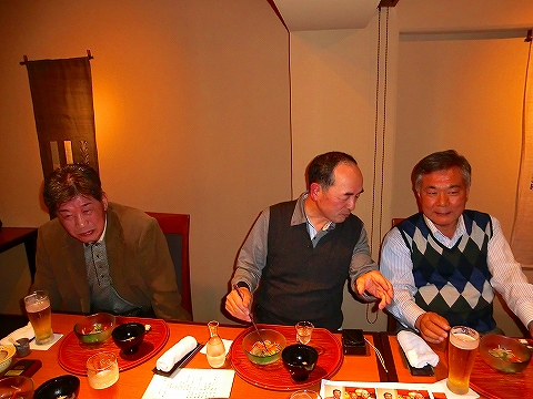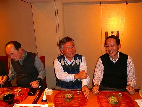 今回の役員会は、丸毛さんの定年退職に伴う役員復帰と10月に開催された、同窓会総会の出席報告並びにちょっと早めの忘年会を兼ね、いつものように松元さんの御好意により、心斎橋Mビル4階の会議室と、9階の「甘の井」で実施された。
