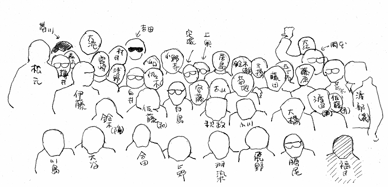 出席者は、早い順に、江渕敏美、佐藤茂伸(C)、渡部義晴、定塚彰範、板垣岩男、白井力、飛野勝男、浅井繁、木村透、佐々木秀勝(E)、多田八重子(C)、小野寺清、鈴木光子(C)の13名。()がないのはすべてM。