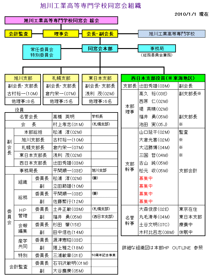 平成22年1月 本部、松浦副会長から提供された情報により、西日本支部の役員を主体に、整理しました。