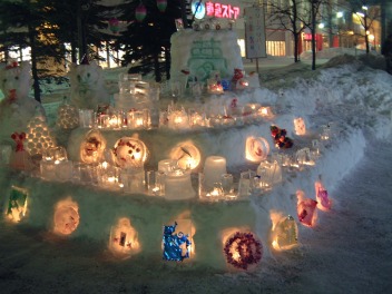 最寄り駅横で展示していたアイスキャンドルです。